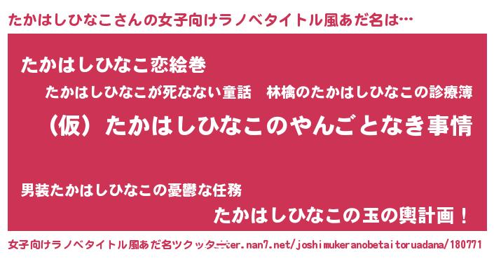 | 胡散臭い通販商品みたいなあだ名 | 『必ず成功するブレスレット…その名も「たかはしひなこ」』 |