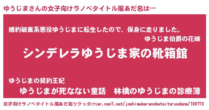 | 男性向けラノベタイトル風あだ名 | 『冴えないゆうじまの育てかた』 |
