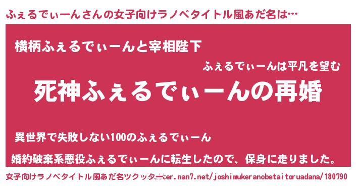 | 男性向けラノベタイトル風あだ名 | 『ノーゲーム・ノーフェルディーン』 |