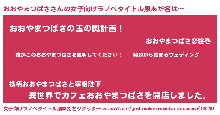 | 男性向けラノベタイトル風あだ名 | 『オオヤマツバサアートオンライン』 |