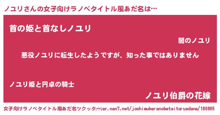 男性向けラノベタイトル風あだ名 | 『この素晴らしい世界にノユリを!』 |