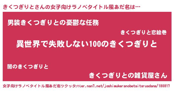 | 男性向けラノベタイトル風あだ名 | 『きくつぎりとという概念が存在しない退屈な世界 』 |