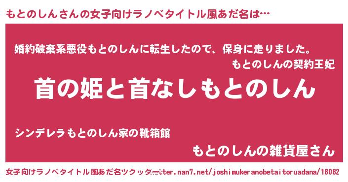 | 男性向けラノベタイトル風あだ名 | 『はたらくもとのしんさま!』 |