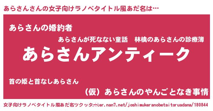 | 意味不明あだ名 | 『自称あらさん』『あらさんフォーエバー』 |