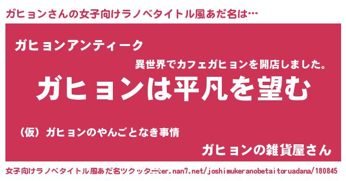 | 胡散臭い通販商品みたいなあだ名 | 『信頼と実績のネックレス…その名も「ガヒョン」』 |