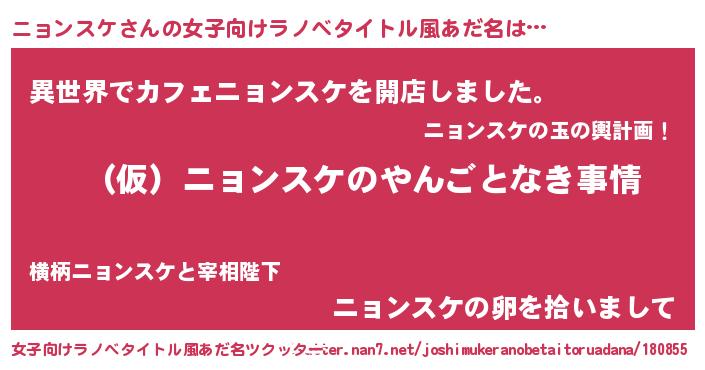 | 男性向けラノベタイトル風あだ名 | 『ニョンスケの憂鬱』 |