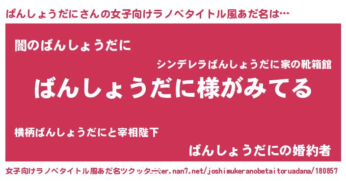 | 意味不明あだ名 | 『とにかく怪しいばんしょうだに』 |