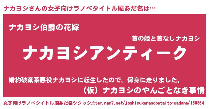| 男性向けラノベタイトル風あだ名 | 『魔法科高校のナカヨシ』 |