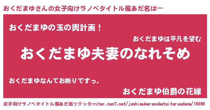 | 男性向けラノベタイトル風あだ名 | 『おまえをオタクにしてやるから、俺をおくだまゆにしてくれ! 』 |