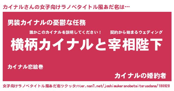 | 男性向けラノベタイトル風あだ名 | 『カイナルに滅ぼされるだけの簡単なお仕事です』 |