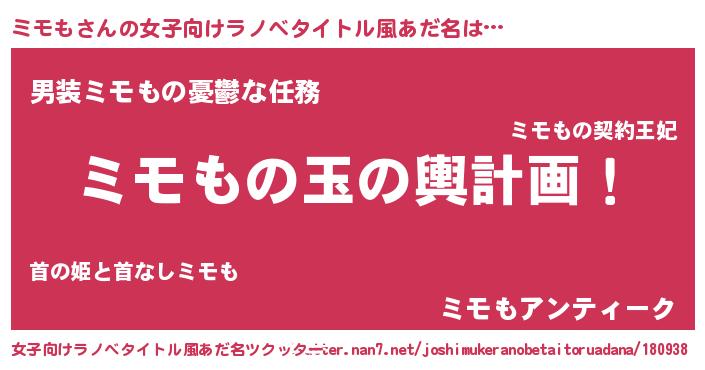 | 男性向けラノベタイトル風あだ名 | 『ミモも~年齢イコール彼女いない歴の魔法使い~』 |