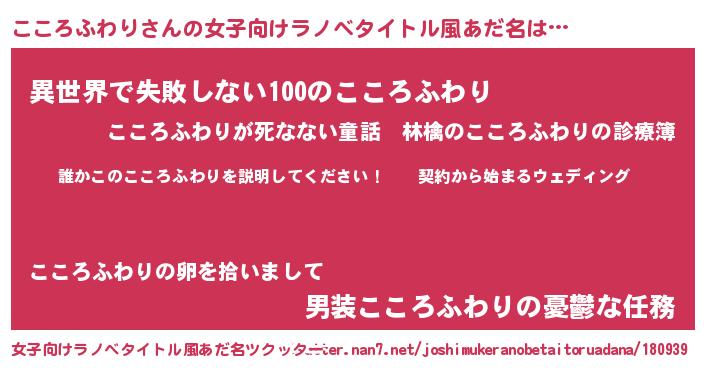 | 胡散臭い通販商品みたいなあだ名 | 『億万長者になれる霊験あらたかなお札…その名も「こころふわり」』 |