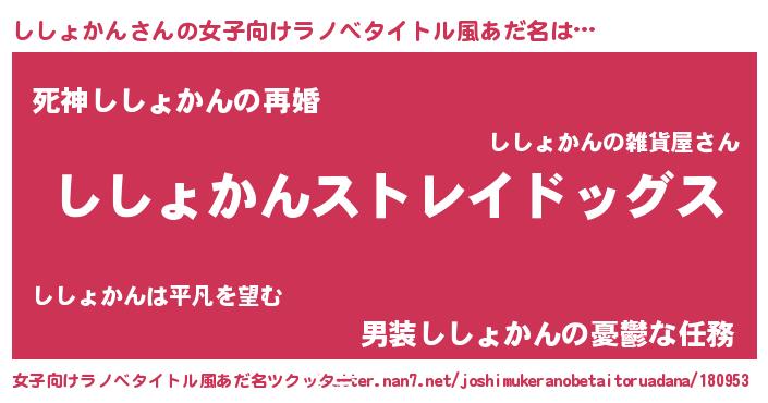 | 意味不明あだ名 | 『自称ししょかん』 |