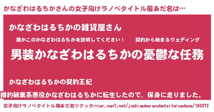 | 胡散臭い通販商品みたいなあだ名 | 『運命の人と巡り会える高級そうな壺…その名も「かなざわはるちか」』 |