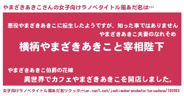 | 男性向けラノベタイトル風あだ名 | 『やまざきあきこに滅ぼされるだけの簡単なお仕事です』 |