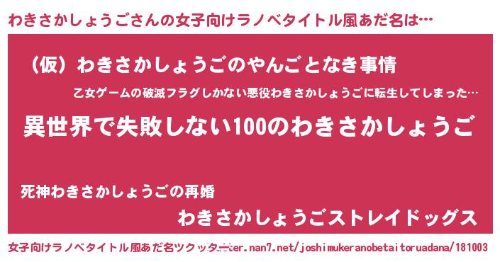 | 胡散臭い通販商品みたいなあだ名 | 『絶対に幸福をもたらす水素水…その名も「わきさかしょうご」』 |