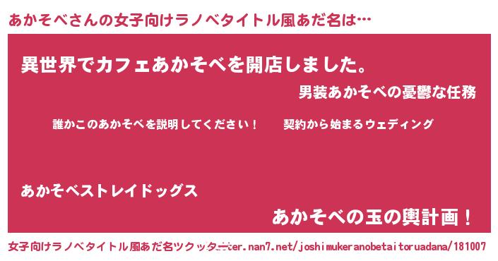 | 男性向けラノベタイトル風あだ名 | 『アカソベアートオンライン』 |