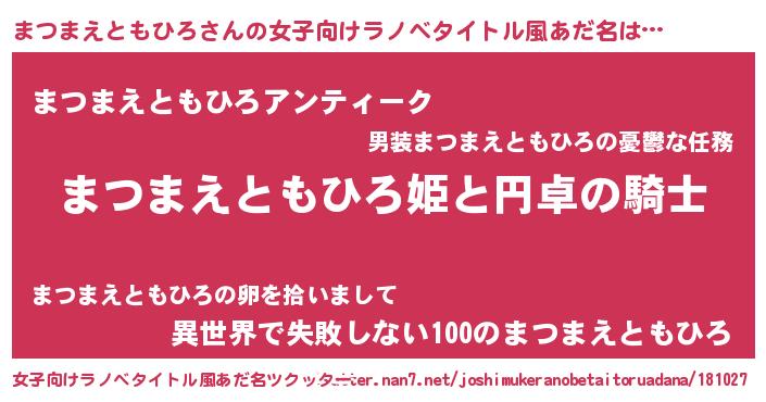 | 男性向けラノベタイトル風あだ名 | 『まつまえともひろの憂鬱』 |