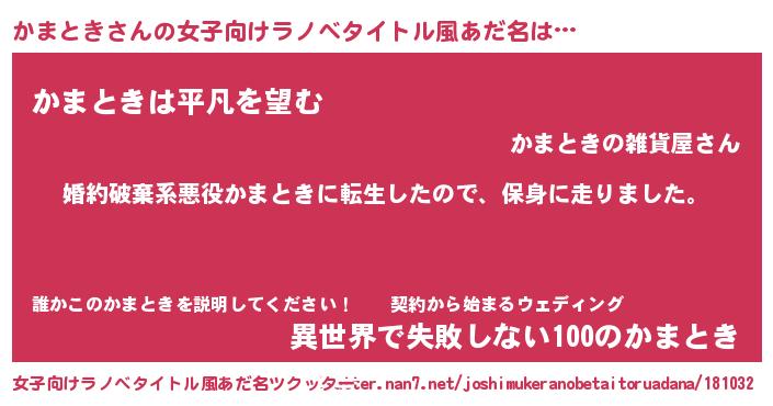 | 胡散臭い通販商品みたいなあだ名 | 『信頼と実績のネックレス…その名も「かまとき」』 |