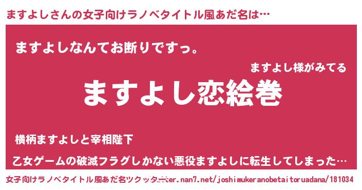 | 男性向けラノベタイトル風あだ名 | 『おまえをオタクにしてやるから、俺をますよしにしてくれ! 』 |