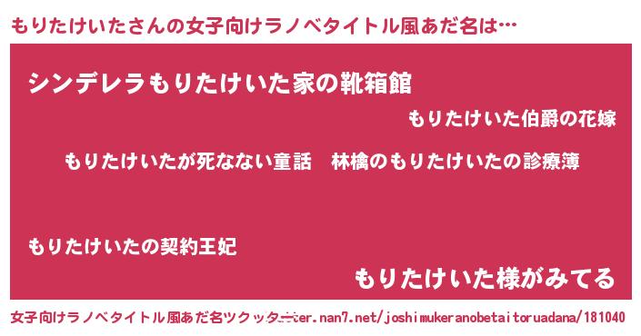 | 意味不明あだ名 | 『住所不定無職もりたけいた(74歳)』 |