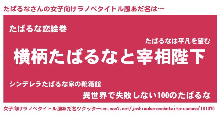 | 男性向けラノベタイトル風あだ名 | 『たばるなに滅ぼされるだけの簡単なお仕事です』 |