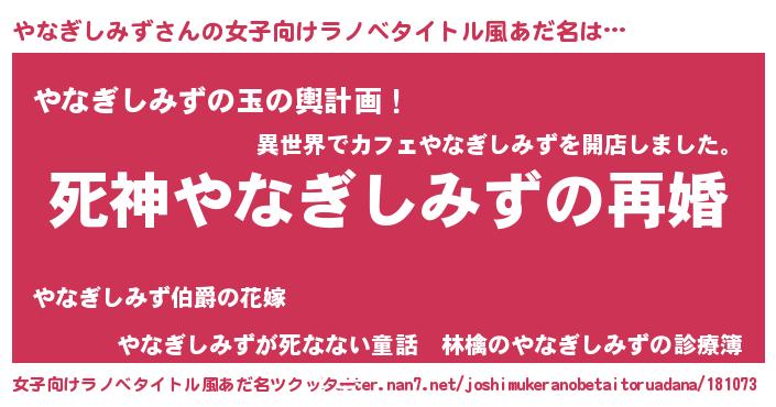 | 男性向けラノベタイトル風あだ名 | 『ノーゲーム・ノーヤナギシミズ』 |