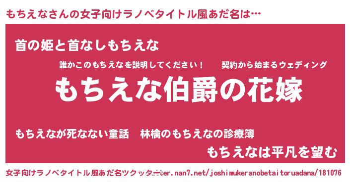 | 男性向けラノベタイトル風あだ名 | 『やはりもちえなの青春ラブコメはまちがっている 』 |
