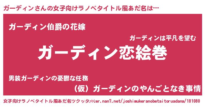 | ヒーロー風カッコイイあだ名 | 『友情の使者ガーディン』『幻影騎士ガー』 |