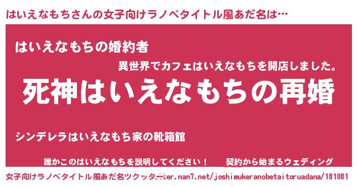 | 男性向けラノベタイトル風あだ名 | 『ノーゲーム・ノーハイエナモチ』 |