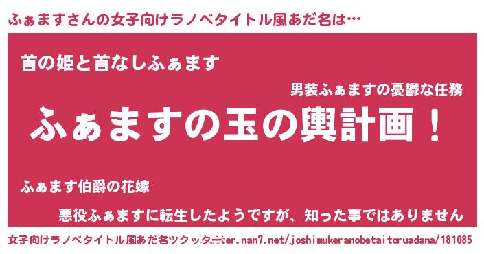 | 胡散臭い通販商品みたいなあだ名 | 『あなたにだけ特別に提供する世界で10本だけ現存している希少なブランデー…その名も「ふぁます」』 |