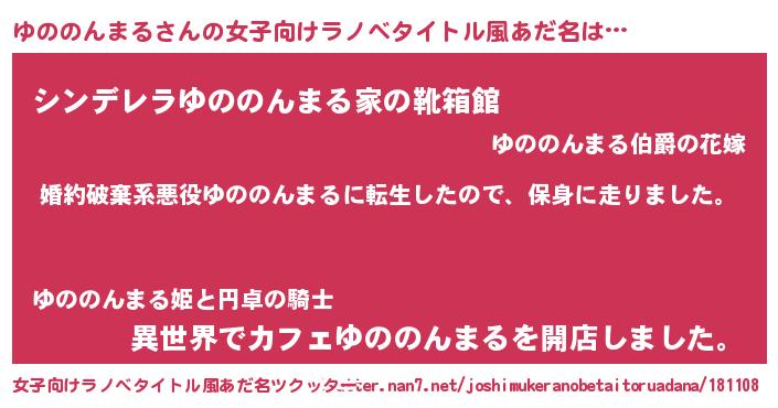 男性向けラノベタイトル風あだ名 | 『転生したらゆののんまるだった件』 |