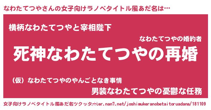 | 男性向けラノベタイトル風あだ名 | 『ノーゲーム・ノーナワタテツヤ』 |