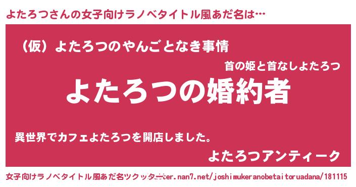 | 胡散臭い通販商品みたいなあだ名 | 『運命の人と巡り会える高級そうな絵画…その名も「よたろつ」』 |