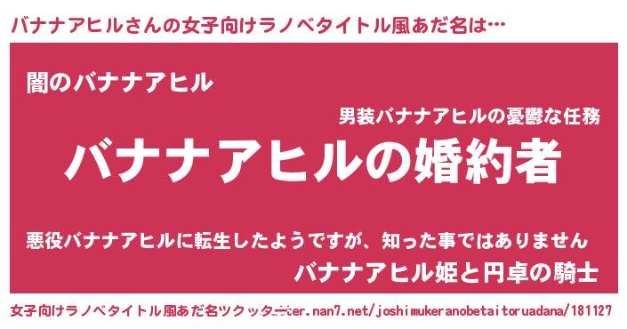 | 男性向けラノベタイトル風あだ名 | 『うちの娘の為ならば、俺はもしかしたらバナナアヒルも倒せるかもしれない。』 |