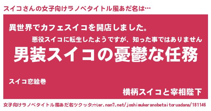 | 胡散臭い通販商品みたいなあだ名 | 『来世でも幸せになれる健康食品…その名も「スイコ」』 |