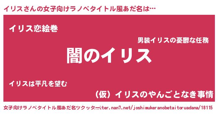 | 男性向けラノベタイトル風あだ名 | 『Re:イリスから始める異世界生活』 |