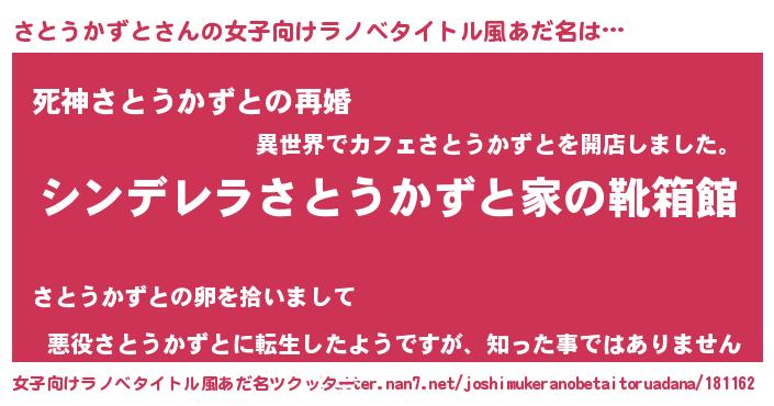 | ヘコむあだ名 | 『さとうかずと(小並感)』『さとっぺ』 |
