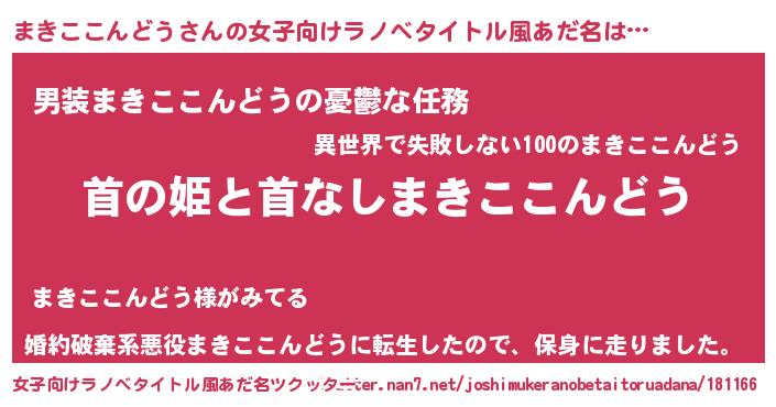 | 男性向けラノベタイトル風あだ名 | 『はたらくまきここんどうさま!』 |