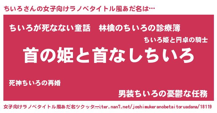 | 意味不明あだ名 | 『住所不定無職ちいろ(50歳)』 |