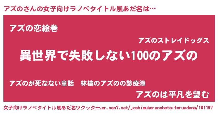 | 男性向けラノベタイトル風あだ名 | 『アズのという概念が存在しない退屈な世界 』 |