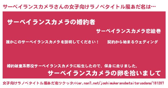 | 男性向けラノベタイトル風あだ名 | 『サーベイランスカメラアートオンライン』 |