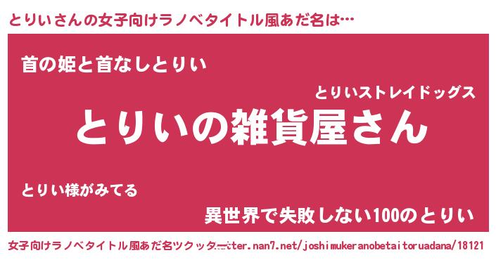 | 意味不明あだ名 | 『とりいフォーエバー』『永久保存とりい』 |
