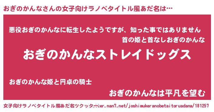 男性向けラノベタイトル風あだ名 | 『Re:おぎのかんなから始める異世界生活』 |