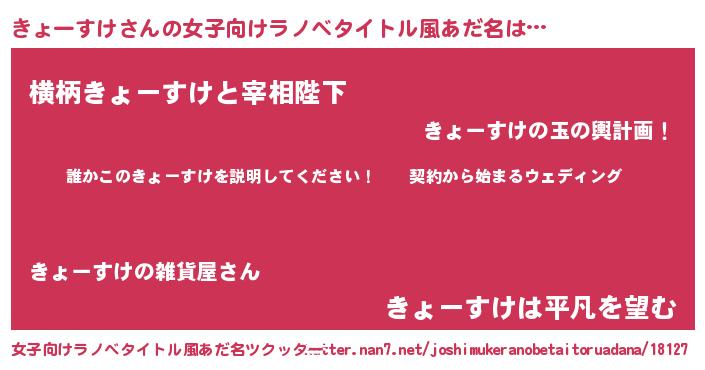 | 男性向けラノベタイトル風あだ名 | 『キョースケアートオンライン』 |