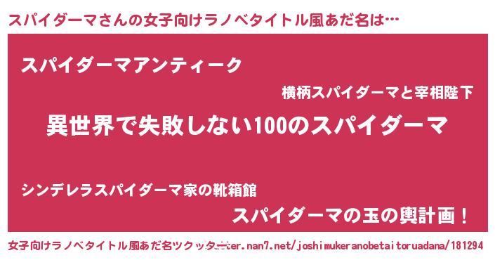 | 胡散臭い通販商品みたいなあだ名 | 『絶対に幸福をもたらす健康食品…その名も「スパイダーマ」』 |