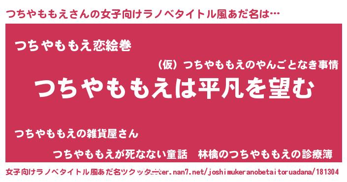| 男性向けラノベタイトル風あだ名 | 『ダンジョンにつちやももえを求めるのは間違っているだろうか』 |