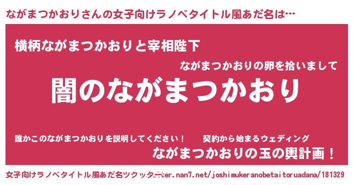 | 男性向けラノベタイトル風あだ名 | 『Re:ながまつかおりから始める異世界生活』 |