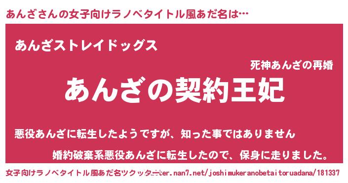 | 男性向けラノベタイトル風あだ名 | 『あんざという概念が存在しない退屈な世界 』 |