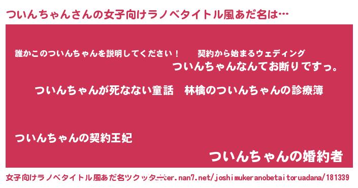 | 意味不明あだ名 | 『住所不定無職ついんちゃん(9歳)』 |